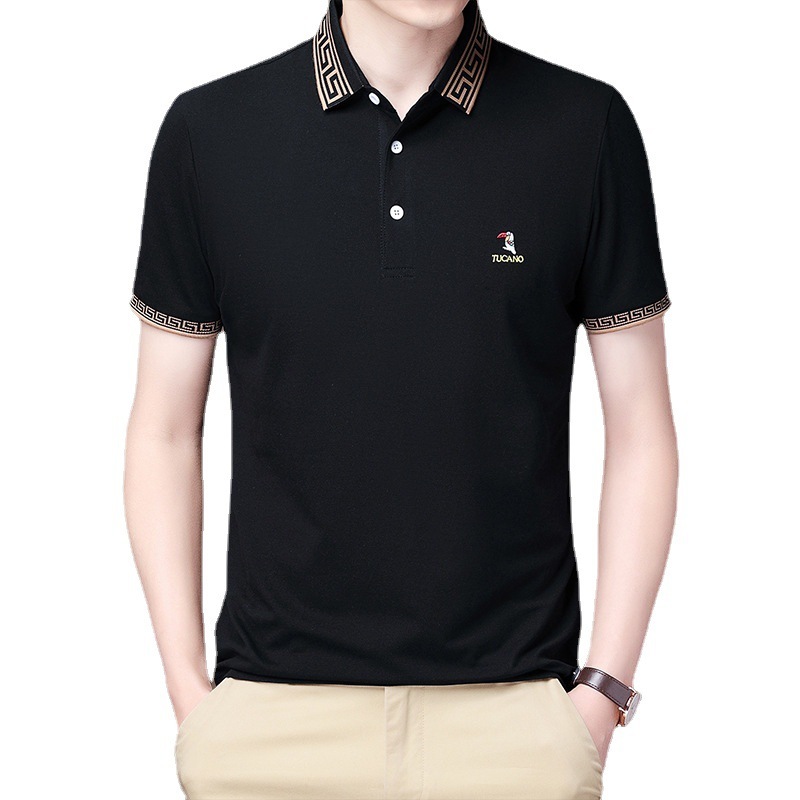 New Short Sleeve T-Shirt For Men Loose Summer Business Plain Mercerized Cotton Lapel Polo Shirt Half Sleeve Father
